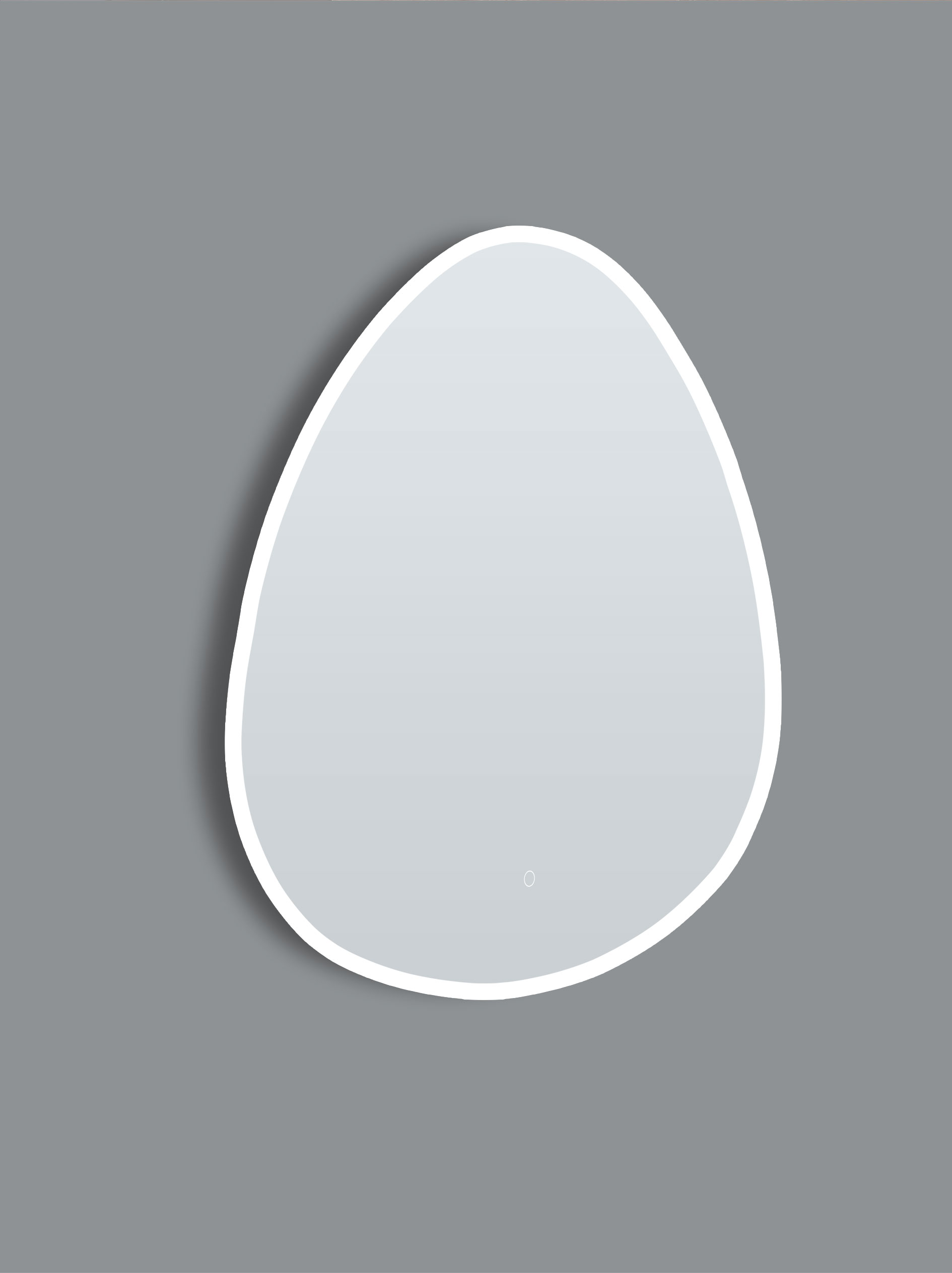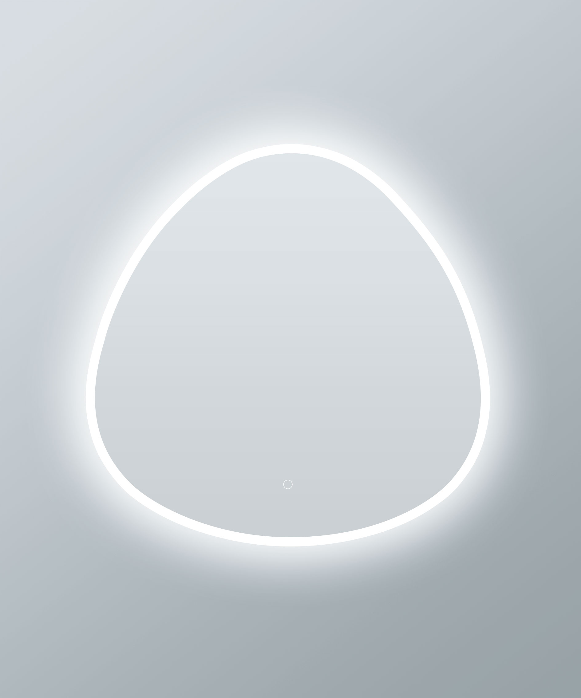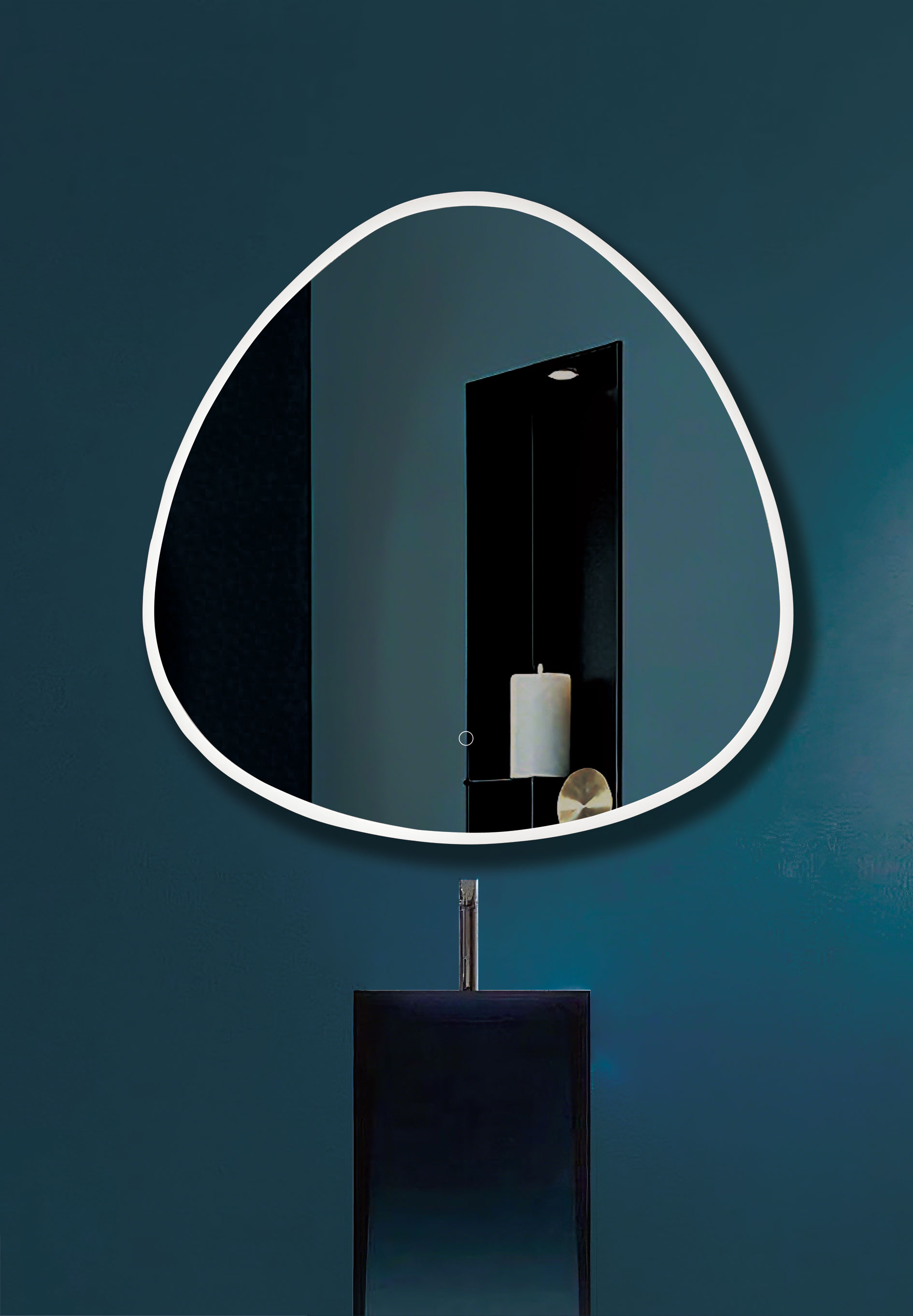 The illuminated outline gives quiet definition to the mirror,