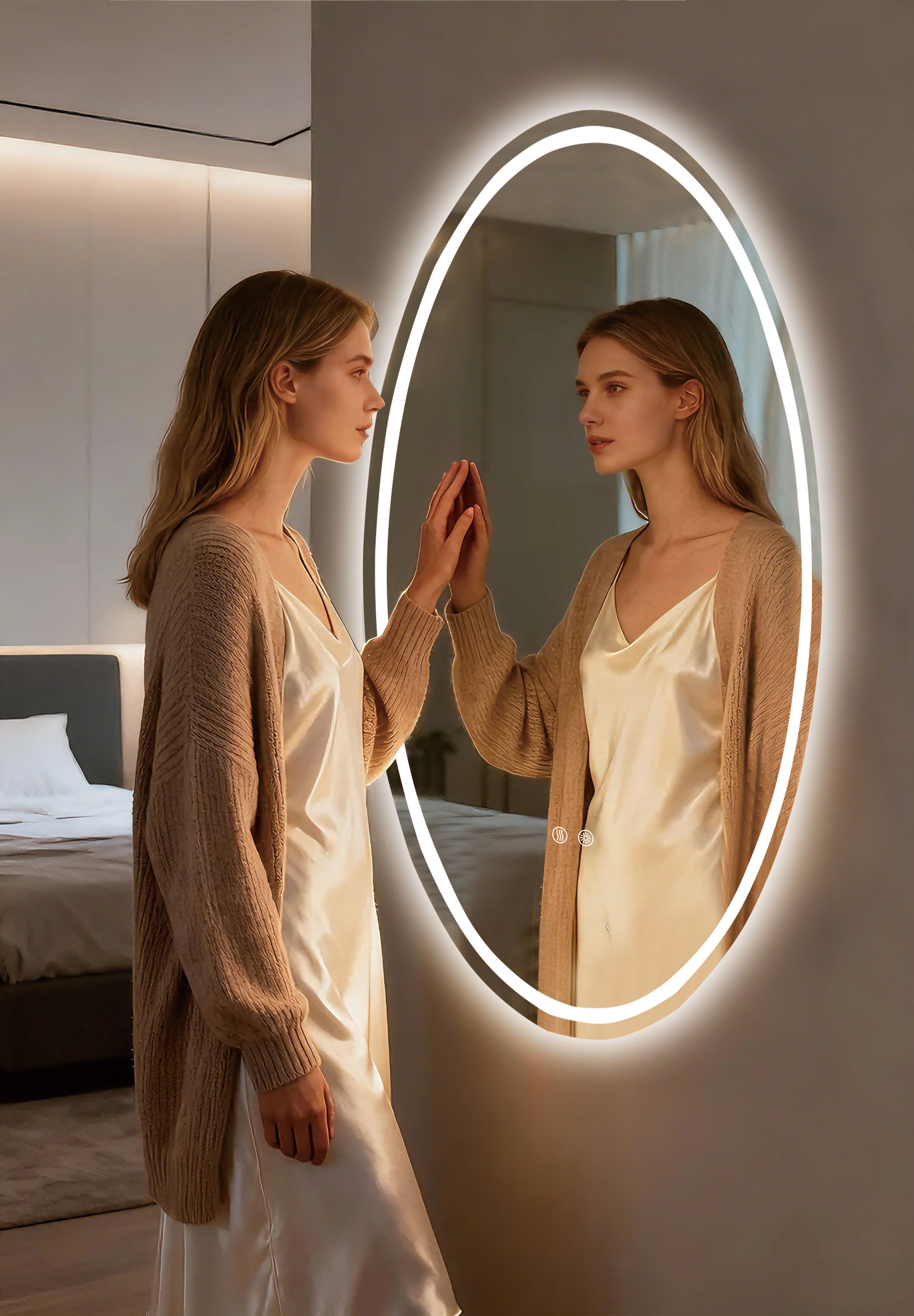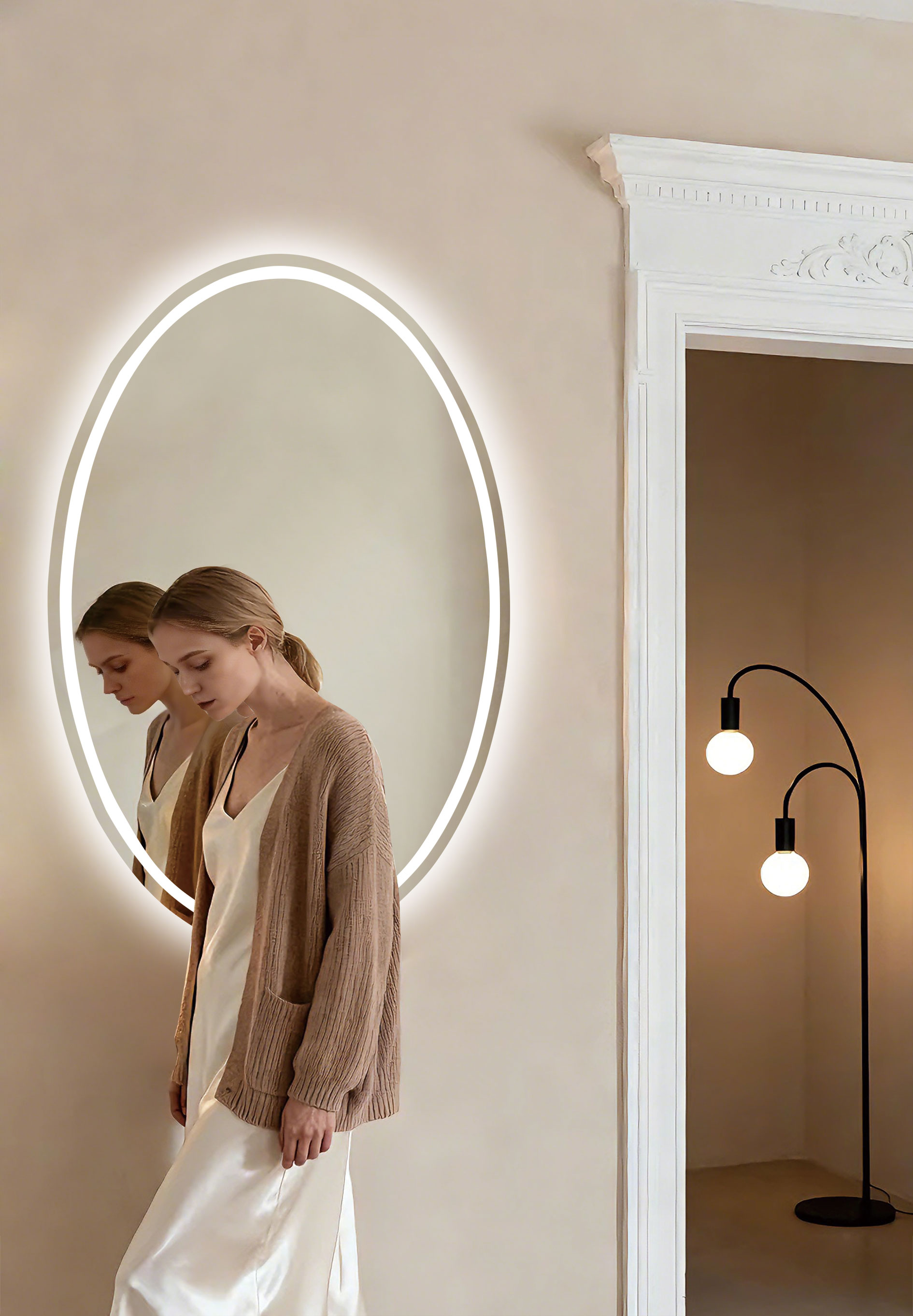 creating a gentle halo that surrounds the mirror with depth.