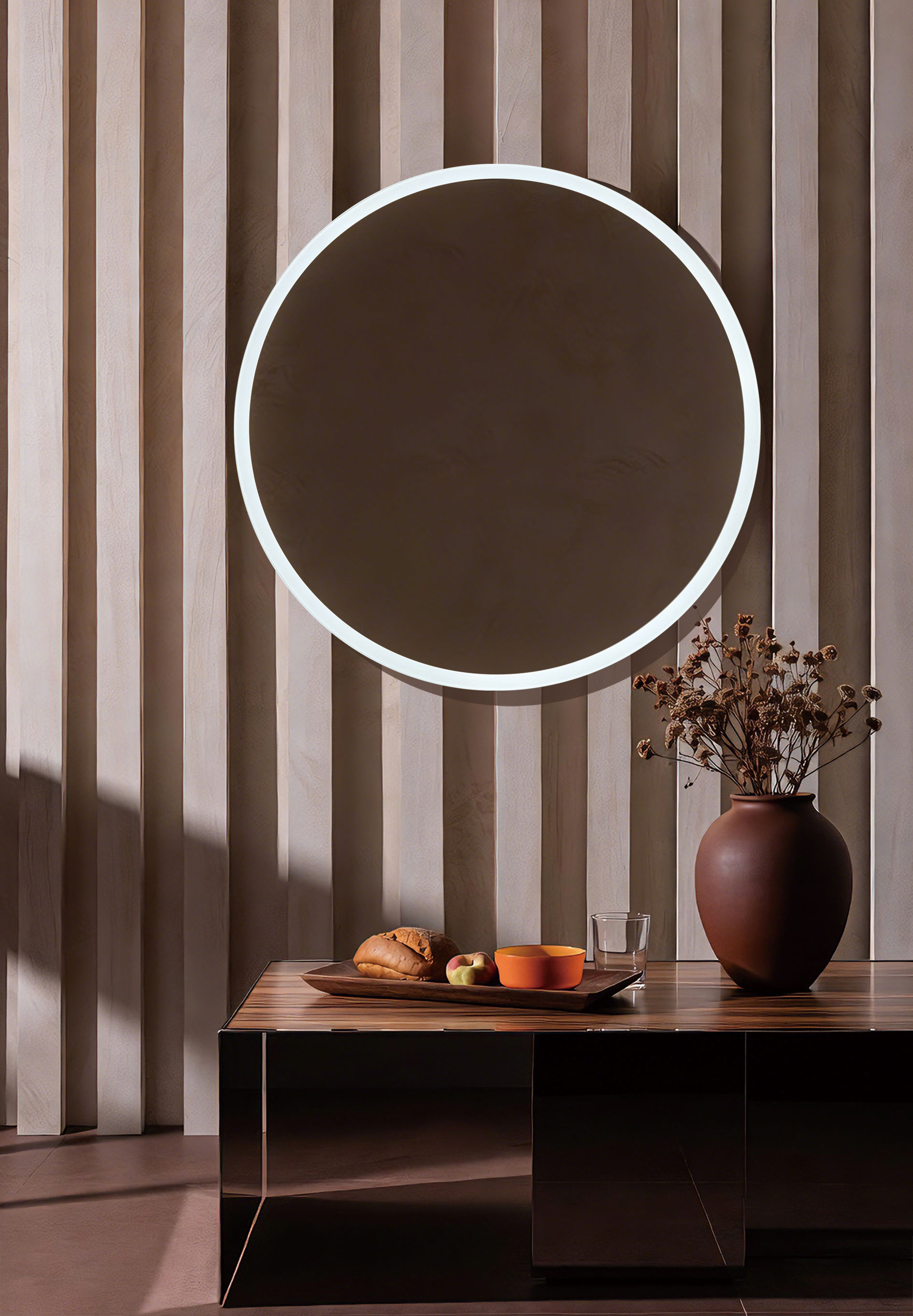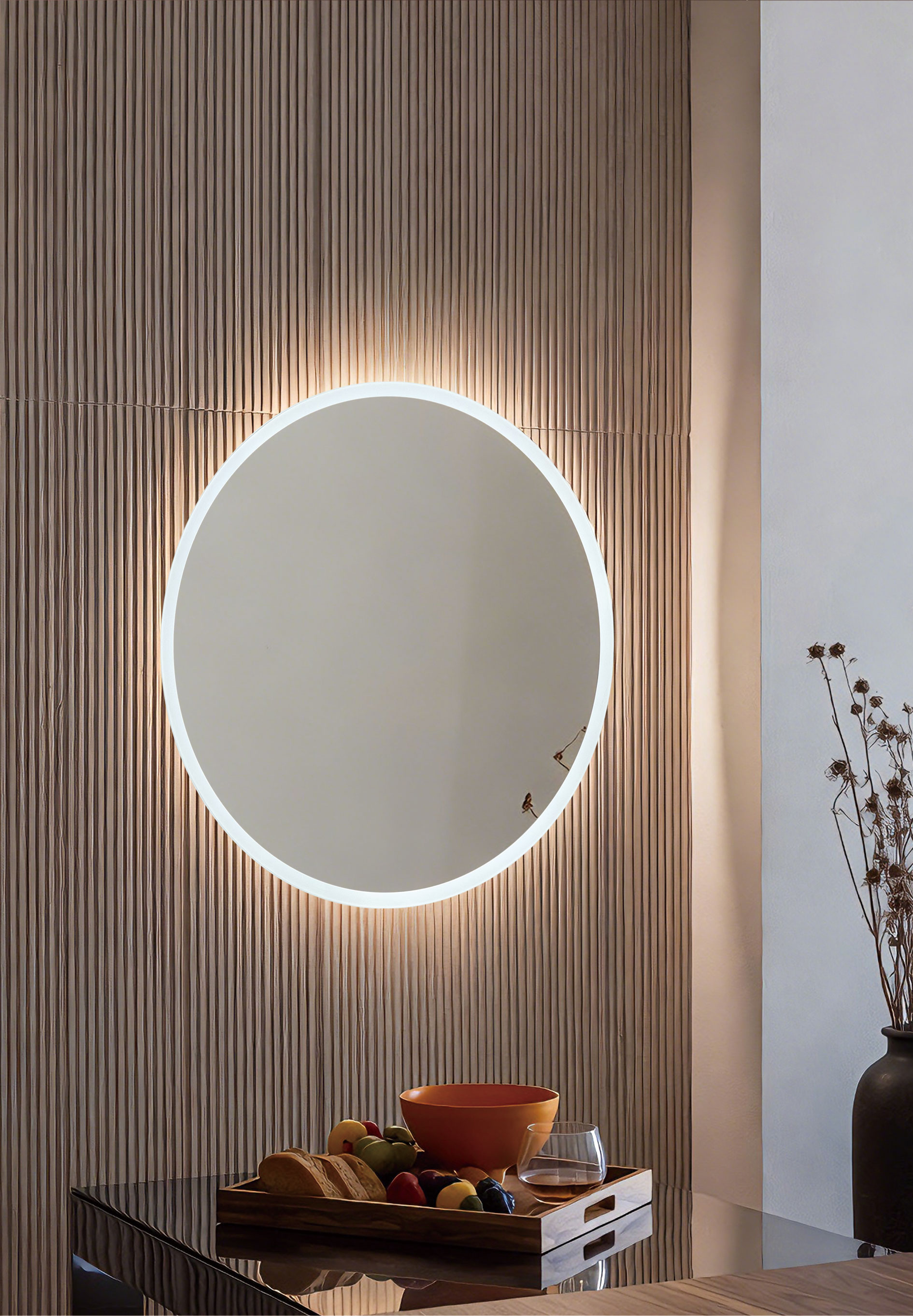 around the mirror’s perimeter.