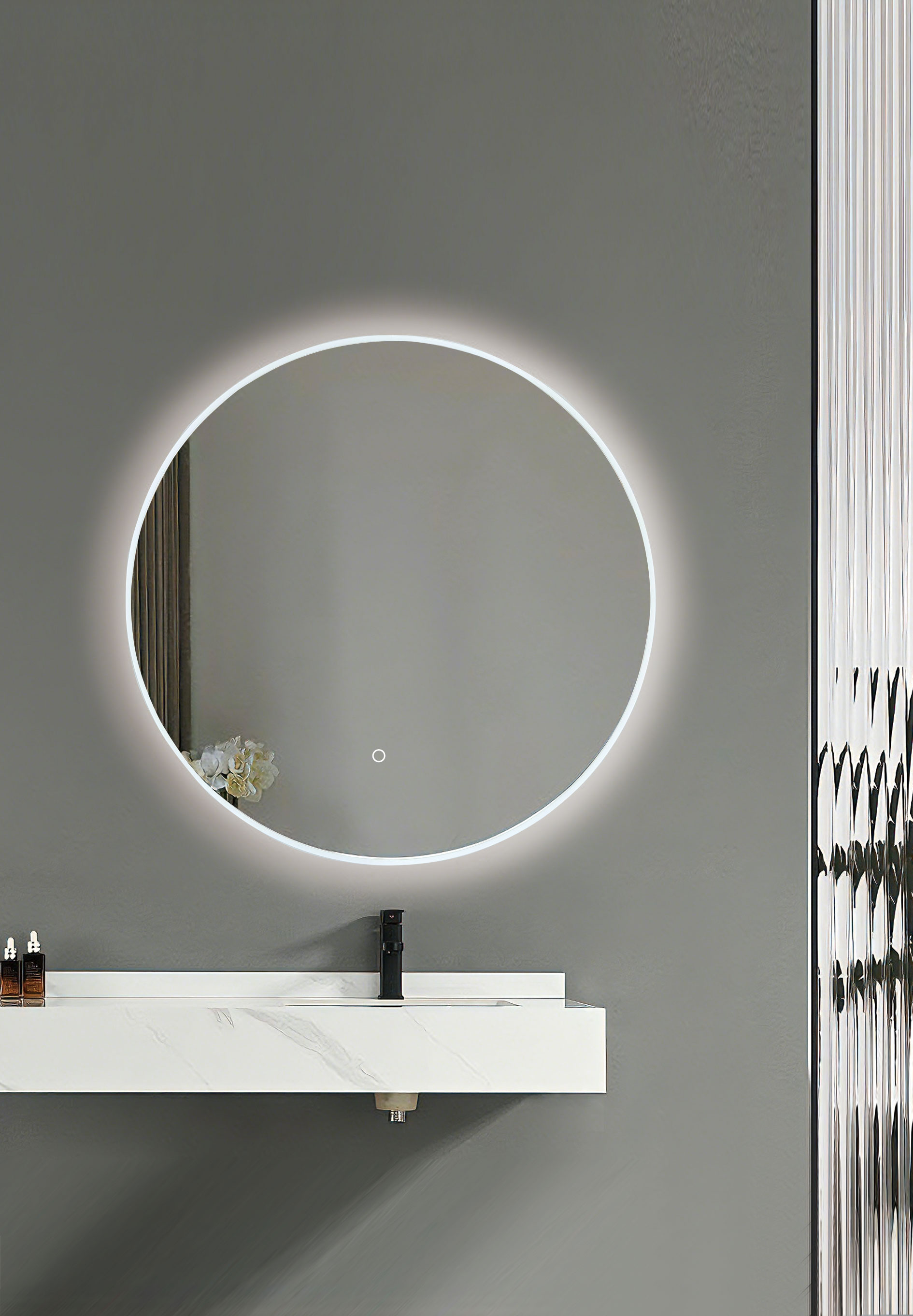 An acrylic perimeter extending parallel to the mirror surface