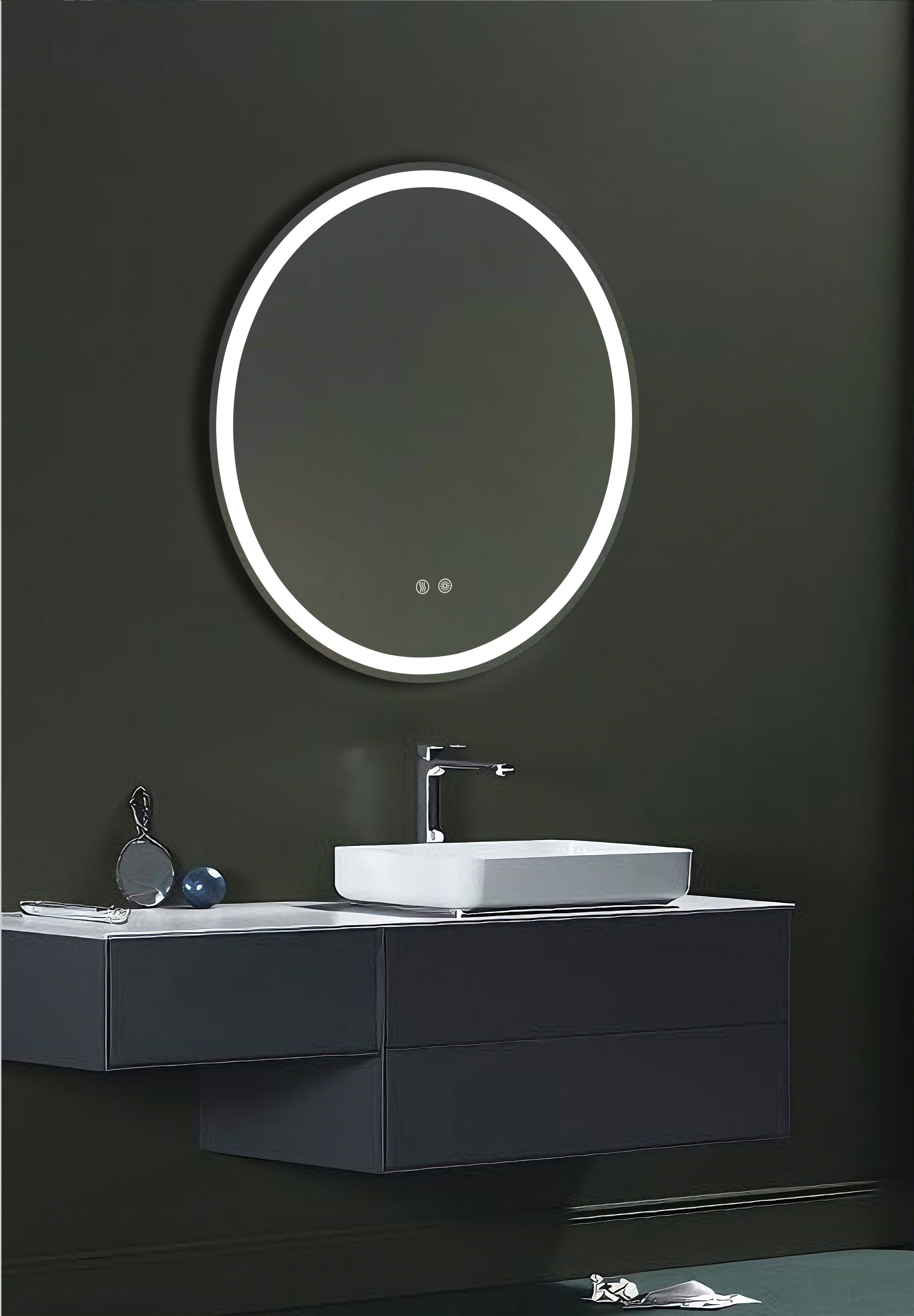 The dual-direction illumination adds subtle depth and balance, giving the mirror a floating presence within the space.