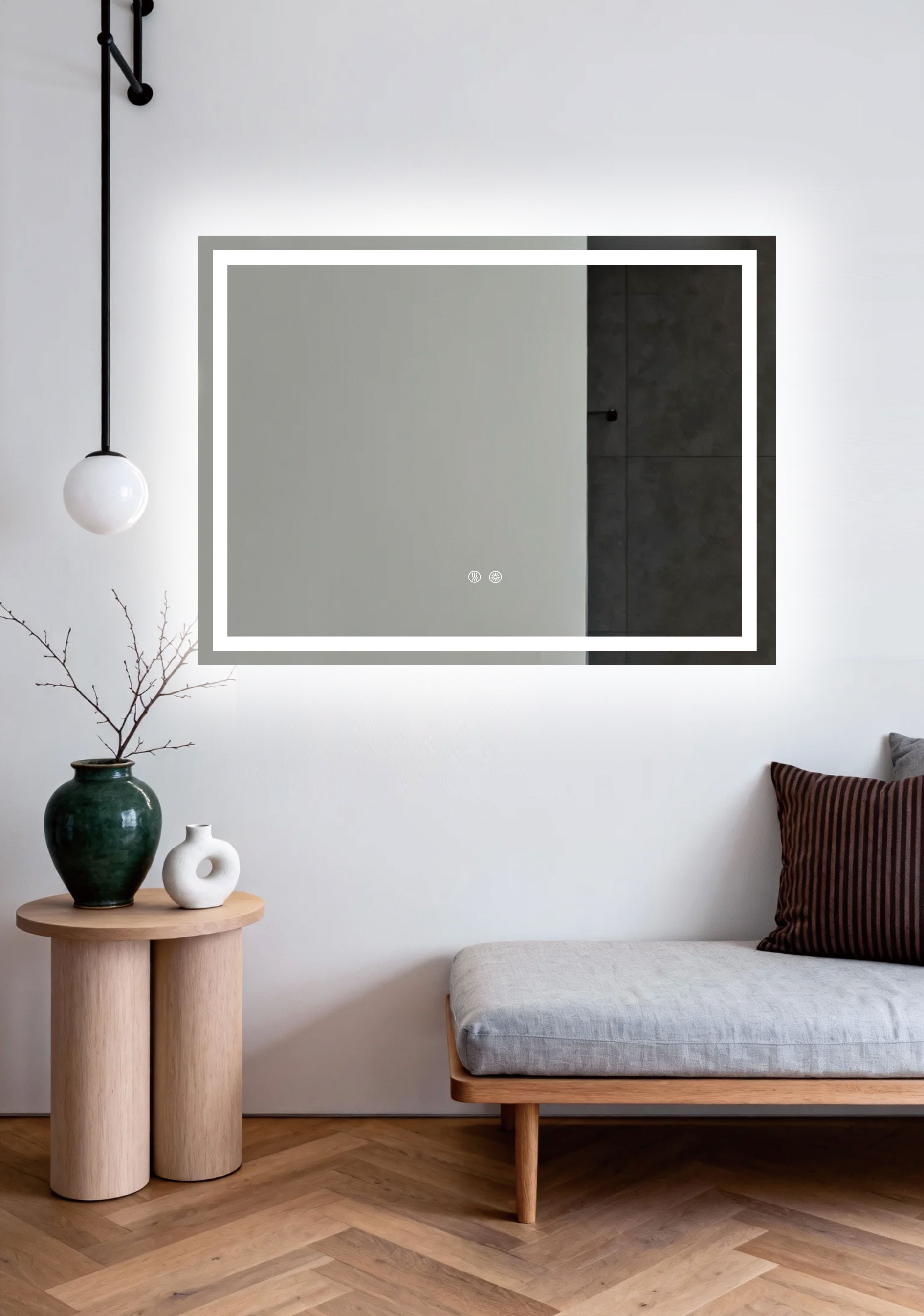 At the same time, subtle backlighting lifts the mirror from the