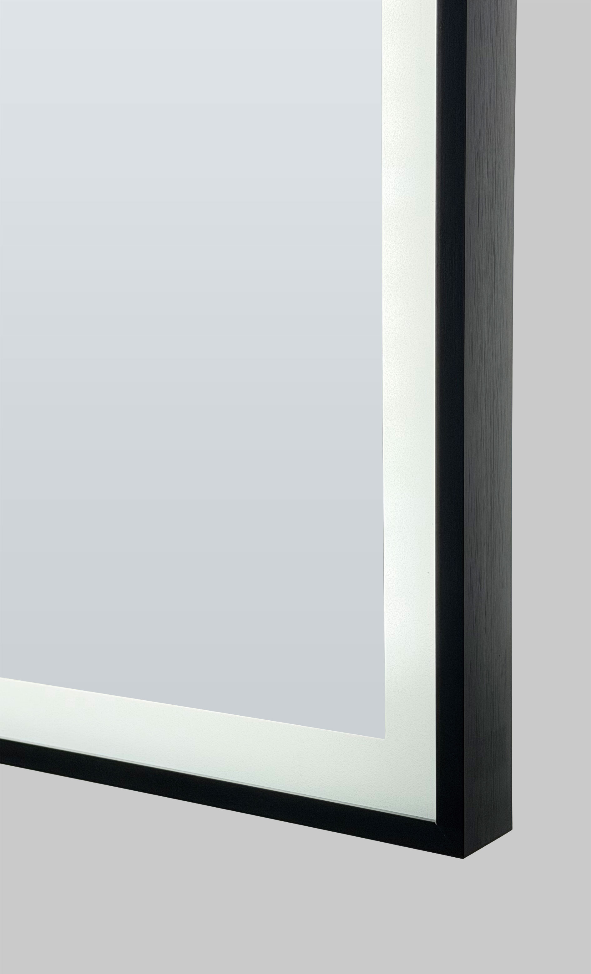 The illuminated front border brings clarity and precision, while the backlight adds depth and quiet presence to the wall.